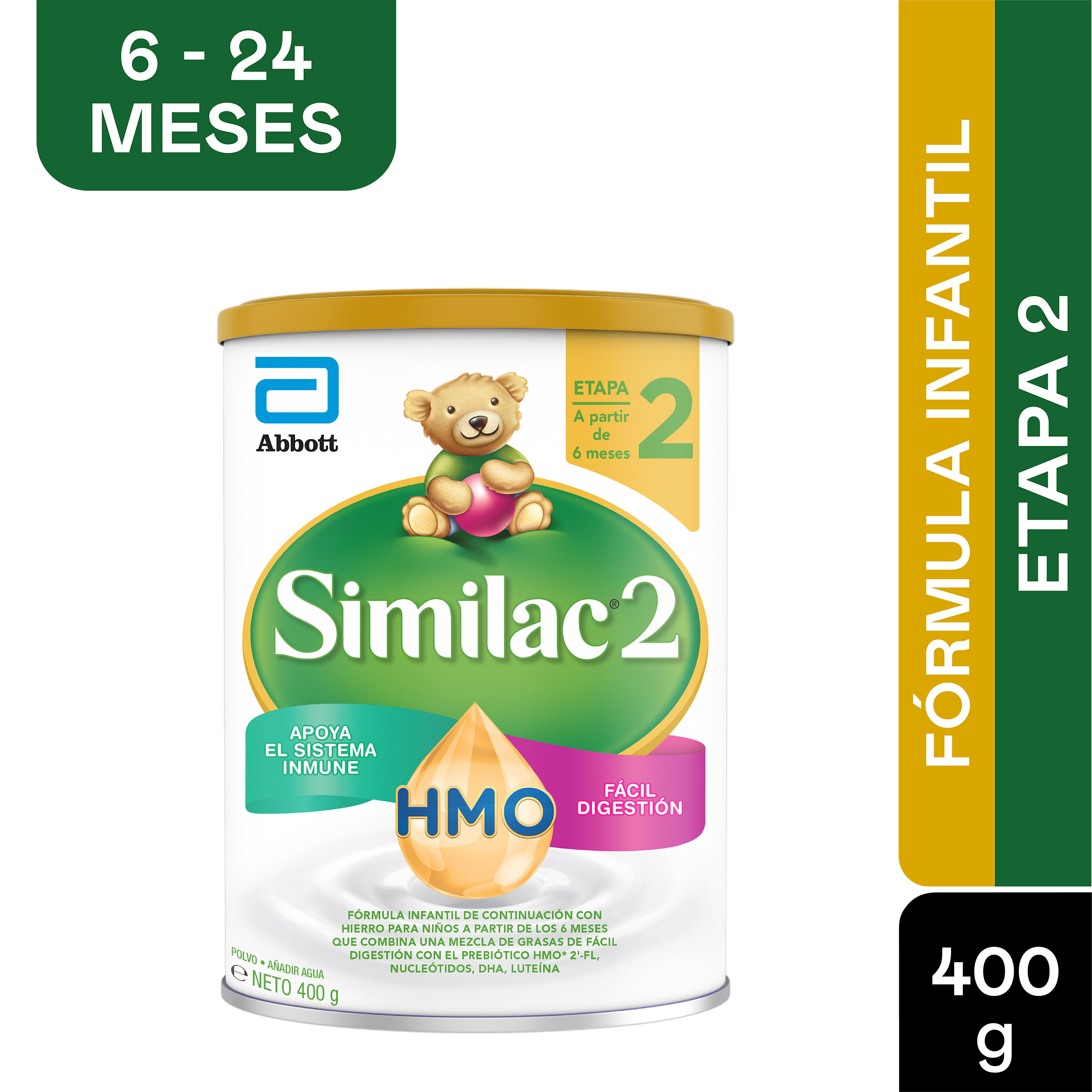 Contiene DHA, luteína y vitamina E para el desarrollo del cerebro y los ojos de tu bebe. Su formula HMO apoya el sistema inmune