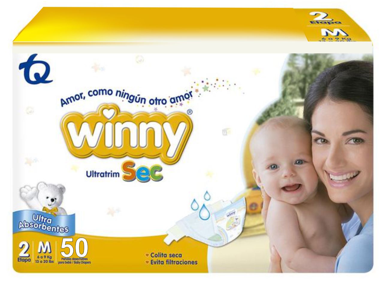 Winny te ofrece los pañales con la mejor absorción y ajuste del mercado, sobre todo brindándote a ti y tu bebé hasta 12 horas de protección y tranquil